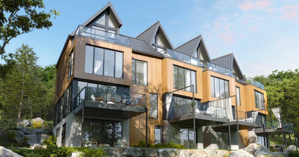 Nous sommes emballés de voir l’enthousiasme qu’Arborescence génère. Merci pour votre intérêt envers ce nouveau milieu de vie, dont nous vous dévoilons fièrement un nouveau rendu extérieur aujourd’hui ! Développés en collaboration avec la firme ABCP, les bâtiments à l’architecture scandinave arborent des fenêtres vastes qui offrent une vibrante connexion avec l’extérieur.